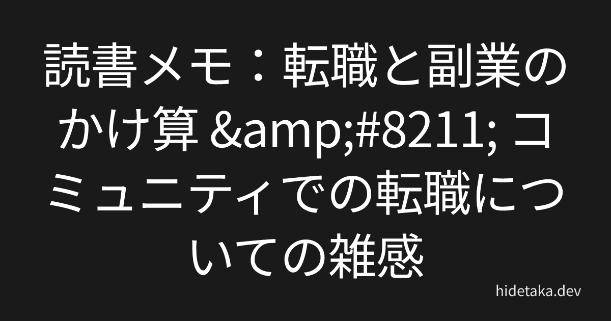 読書メモ:転職と副業のかけ算 – コミュニティでの転職についての雑感