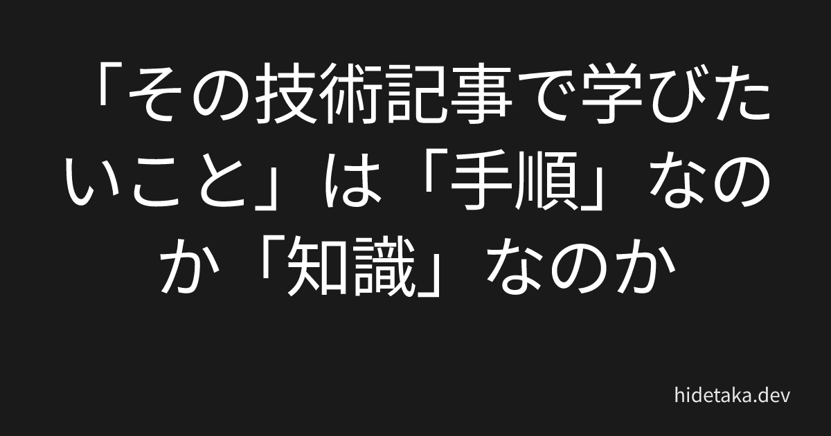 「その技術記事で学びたいこと」は「手順」なのか「知識」なのか
