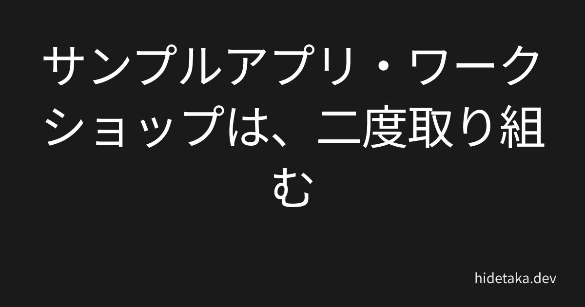 サンプルアプリやワークショップの目的は、「サービスや製品・フレームワークなどについて理解を深める」ことが多いです。ただ、はじめて取り組む場合、無事完走しても「よくわからないこともあったけど、なんとか動いてよかった」が感想になりがちでした。