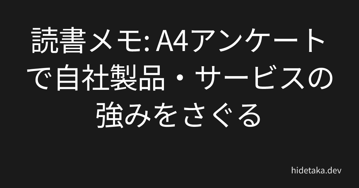 読書メモ: A4アンケートで自社製品・サービスの強みをさぐる