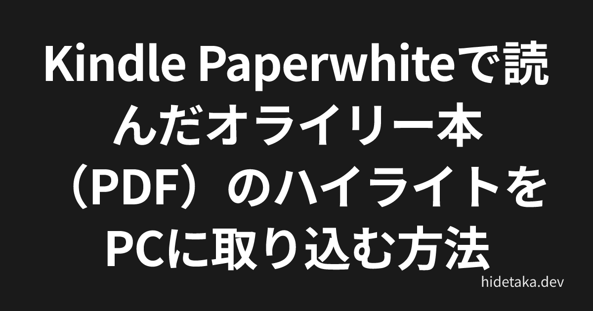 最近 Kindle Paperwhiteを購入しました。気になった部分や紹介したいと思ったセクションをハイライトしておいて、登壇・提案資料などを作るときに引用しやすくなるといいなーという期待があり、早速Send to Kindleでオライリーから購入した書籍を何冊かインポートして読書をしています。