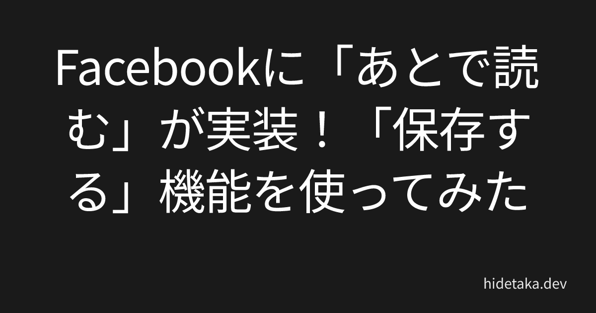 最近Facebookに「投稿を保存する」機能が追加されていました。