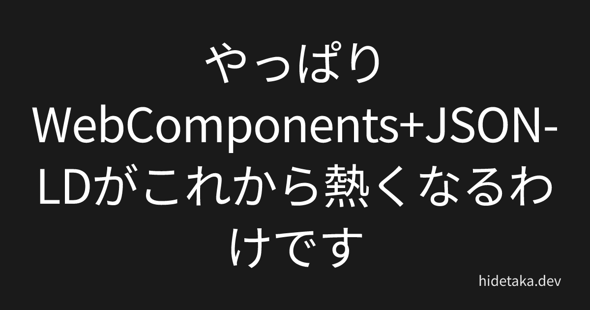なので「JSON-LDでコンテンツを出力するサイトを増やしたい→WebComponentsを使えばより一層楽ですよー!」というところからあの記事が公開されたのではないでしょうか。