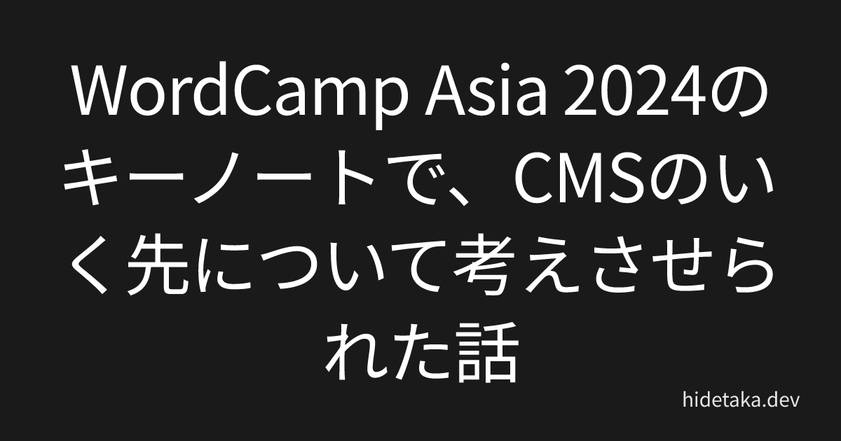 WordCamp Asia 2024のキーノートで、CMSのいく先について考えさせられた話