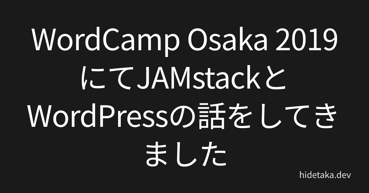 WordCamp Osaka 2019にてJAMstackとWordPressの話をしてきました