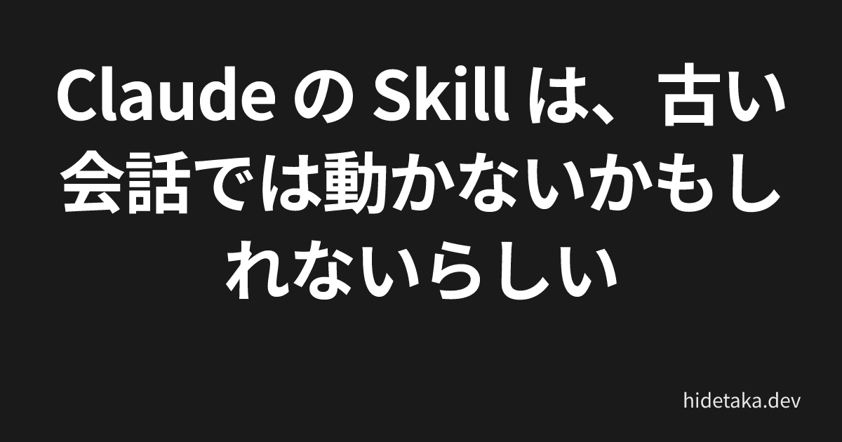 Claude の Skill は、古い会話では動かないかもしれないらしい