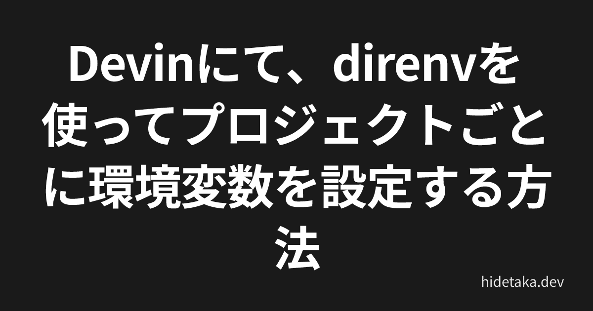 Devin を使った開発では、API キーやデータベース接続情報といった環境変数を扱う必要があります。特に複数のプロジェクトを同時に進めている場合、プロジェクトごとに異なる環境変数を設定しなければなりません。本記事では、direnv を活用してプロジェクト固有の環境変数を Devin に設定する方法を解説します。