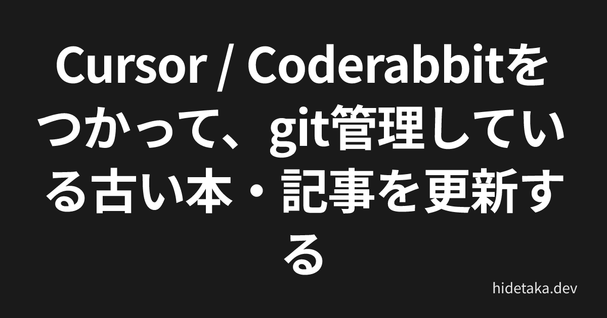Cursor / Coderabbitをつかって、git管理している古い本・記事を更新する